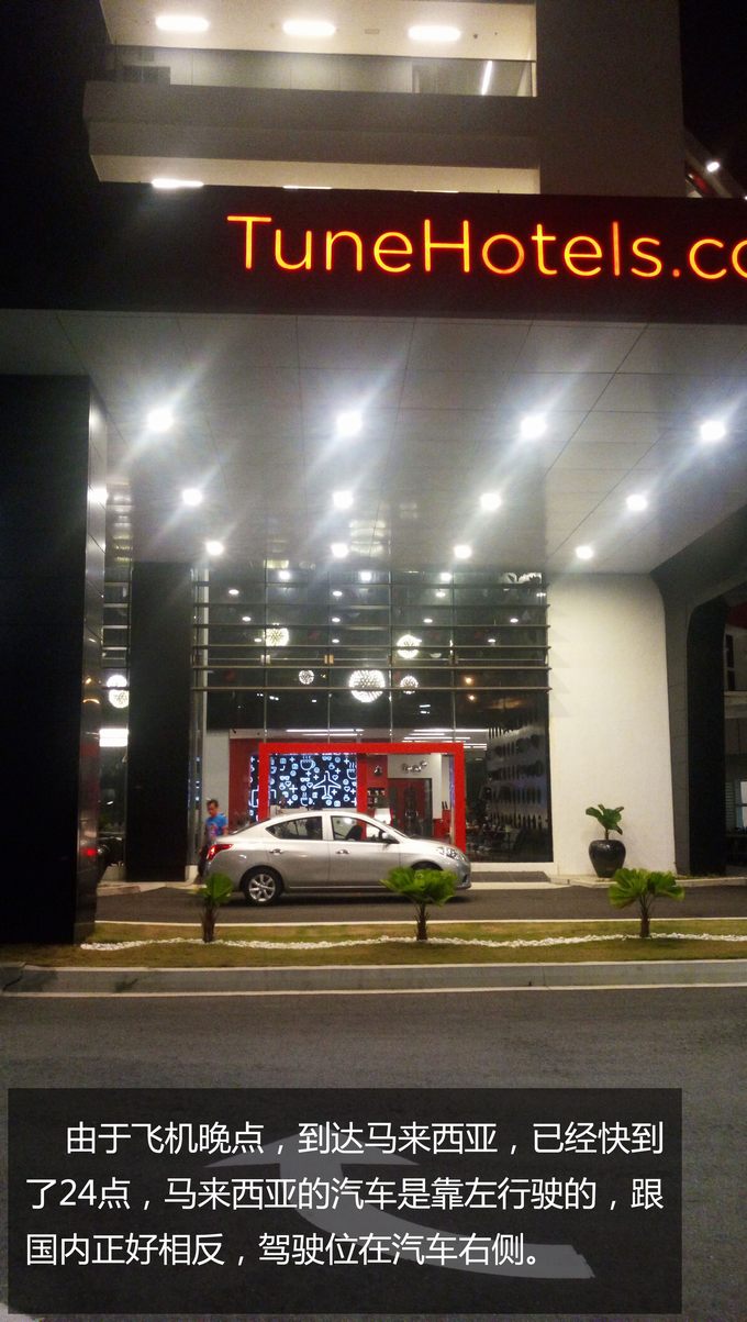 由于飛機(jī)晚點(diǎn),到達(dá)馬來西亞,已經(jīng)快到了24點(diǎn),馬來西亞的汽車是靠左行駛的,跟國內(nèi)正好相反,駕駛位在汽車右側(cè)。