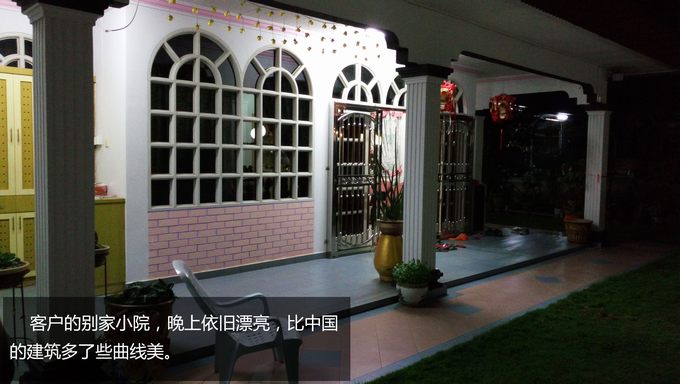 客戶的別家小院,晚上依舊漂亮,比中國的建筑多了些曲線美。