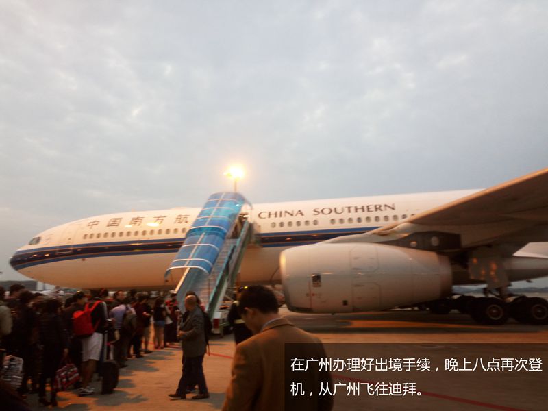 在廣州辦理好出境手續(xù),晚上八點(diǎn)再次登機(jī),從廣州飛往迪拜。