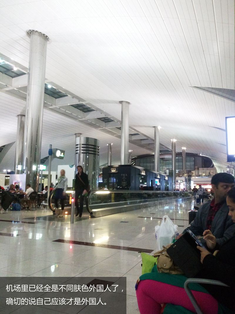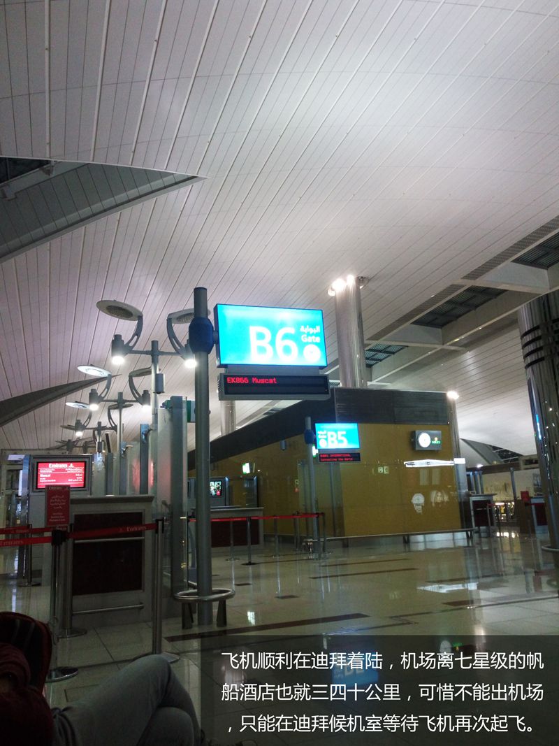 飛機(jī)順利在迪拜著陸,機(jī)場(chǎng)離七星級(jí)的帆船酒店也就三四十公里,可惜不能出機(jī)場(chǎng),只能在迪拜候機(jī)室等待飛機(jī)再次起飛。