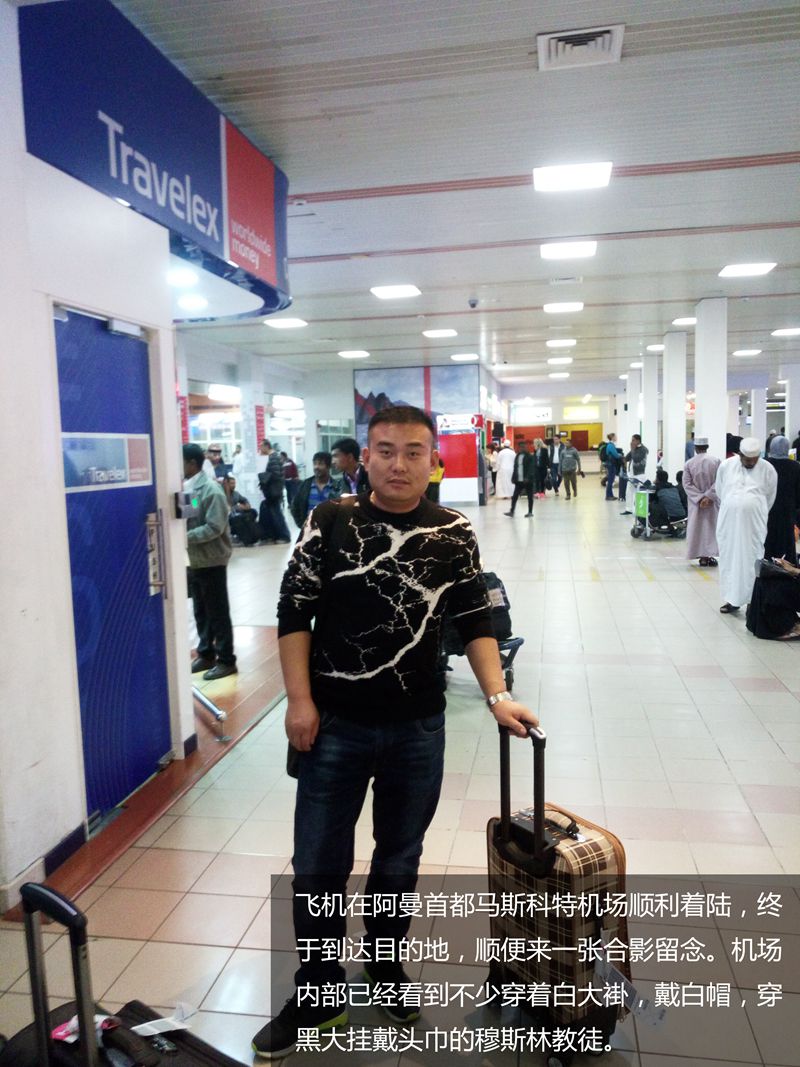飛機(jī)在阿曼首都馬斯科特機(jī)場(chǎng)順利著陸,終于到達(dá)目的地,順便來一張合影留念。機(jī)場(chǎng)內(nèi)部已經(jīng)看到不少穿著白大褂戴白帽,穿黑大掛戴頭巾的穆斯林教徒。