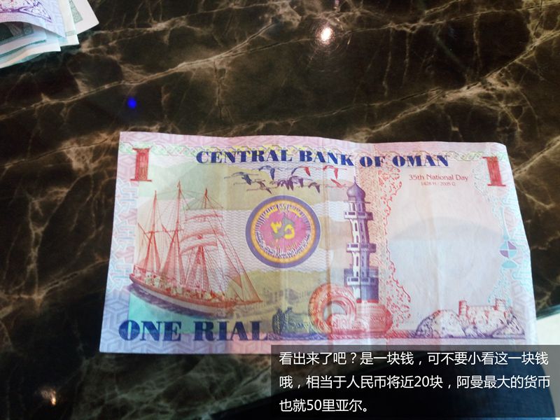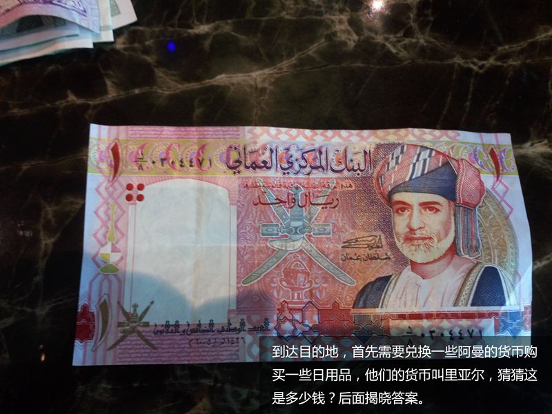 到達(dá)目的地,首先需要兌換一些阿曼的貨幣購買一些日用品,他們的貨幣叫里亞爾,猜猜這是多少錢?后面揭曉答案。