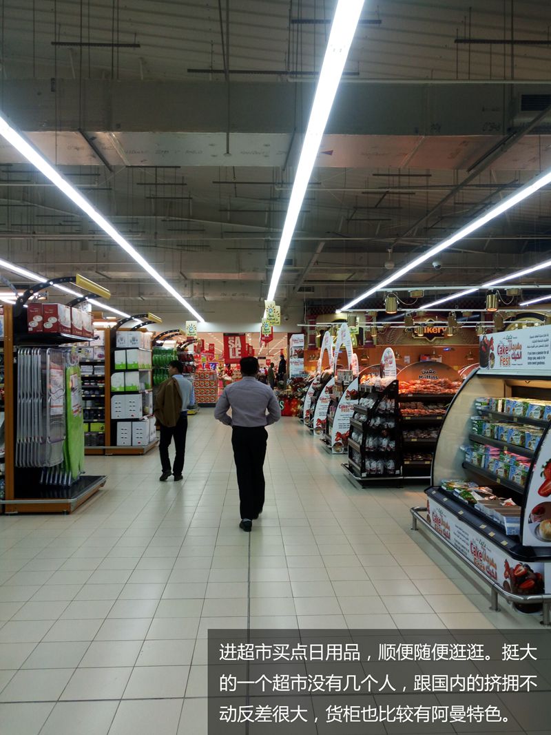 進(jìn)超市買點(diǎn)日用品,順便隨便逛逛。挺大的一個(gè)超市沒有幾個(gè)人,跟國內(nèi)的擠擁不動(dòng)反差很大,貨柜也比較有阿曼特色。