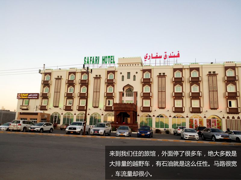 來到我們住的旅館,外面停了很多車,絕大多數(shù)是大排量的越野車,有石油就是這么任性。馬路很寬,車流量卻很小。