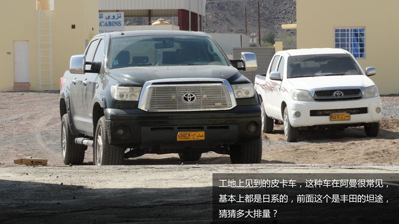 工地上見到的皮卡車,這種車在阿曼很常見,基本上都是日系的,前面這個(gè)是豐田的坦途,猜猜多大排量?