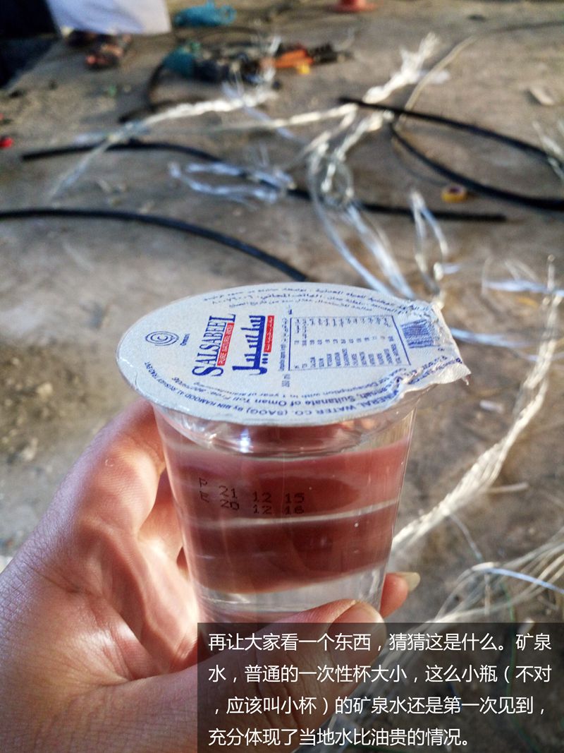 再讓大家看一個(gè)東西,猜猜這是什么。礦泉水,普通的一次性杯大小,這么小瓶(不對(duì),應(yīng)該叫小杯)的礦泉水還是第一次見到,充分體現(xiàn)了當(dāng)?shù)厮扔唾F的情況。