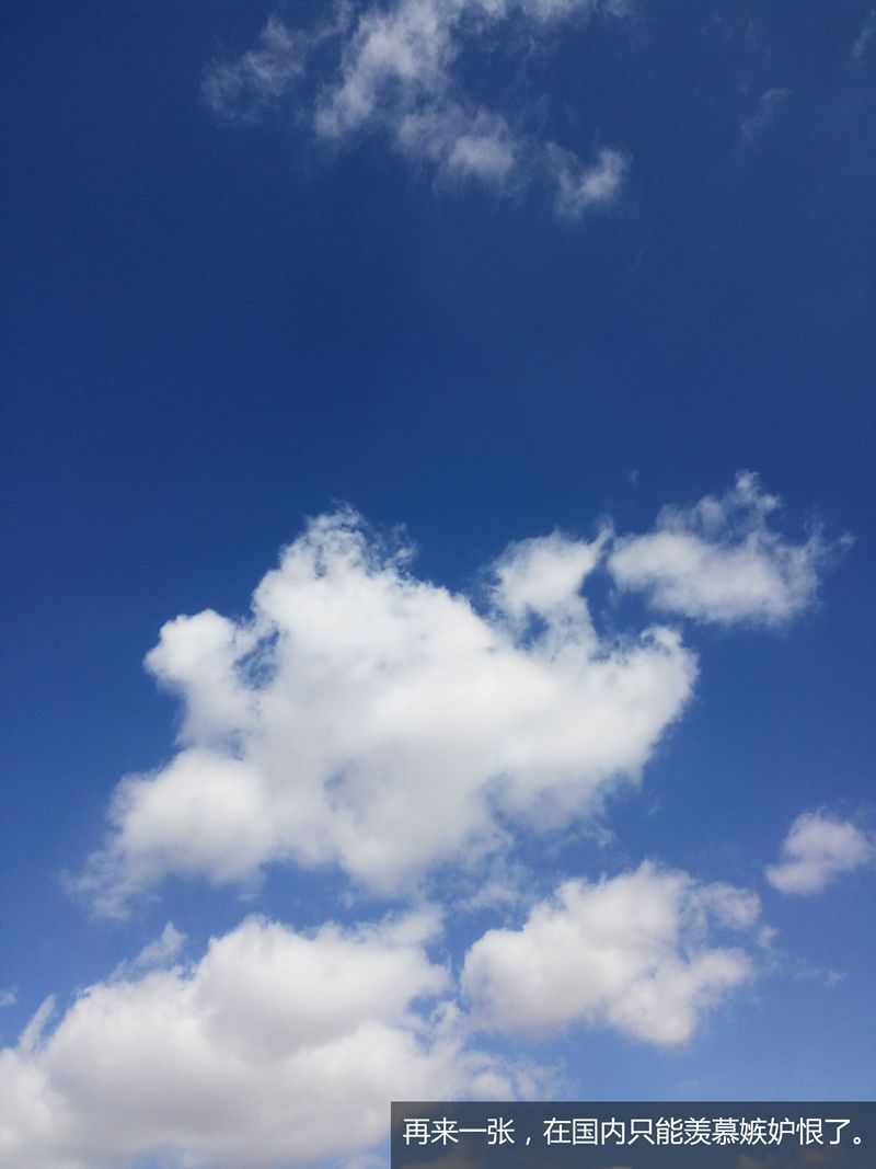 看看當(dāng)?shù)氐奶炜眨刻於际撬{(lán)天白云,很少下雨,空氣質(zhì)量跟國內(nèi)比真是一個(gè)天,一個(gè)地。