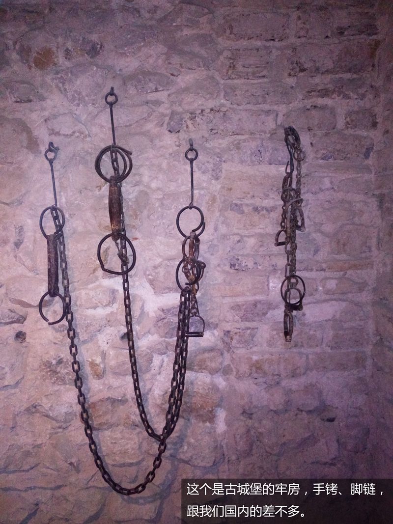 這個(gè)是古城堡的牢房,手銬、腳鏈,跟我們國內(nèi)的差不多。