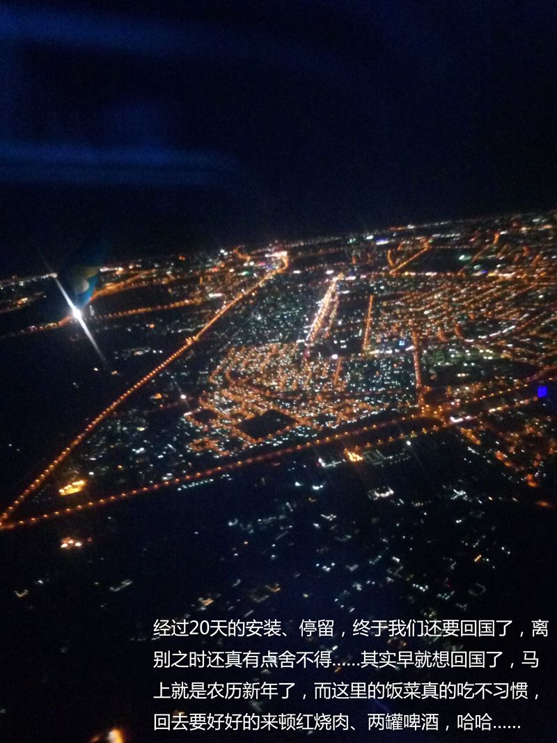 經(jīng)過20天的安裝、停留,終于我們還要回國了,離別之時(shí)還真有點(diǎn)舍不得……其實(shí)早就想回國了,馬上就是農(nóng)歷新年了,而這里的飯菜真的吃不習(xí)慣,回去要好好的來頓紅燒肉、兩罐啤酒,哈哈……